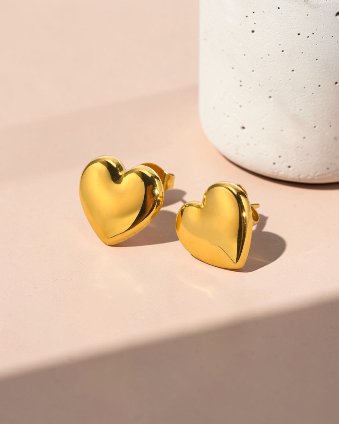 Puffy Gold Heart Studs