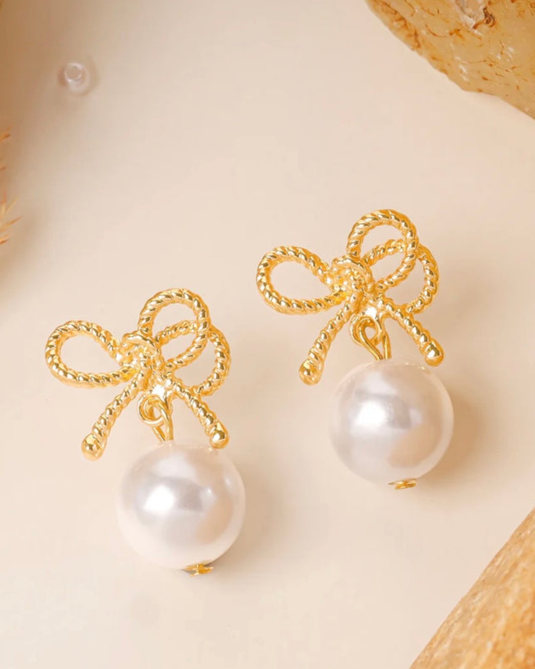 Pearl Bow Drop Earrings