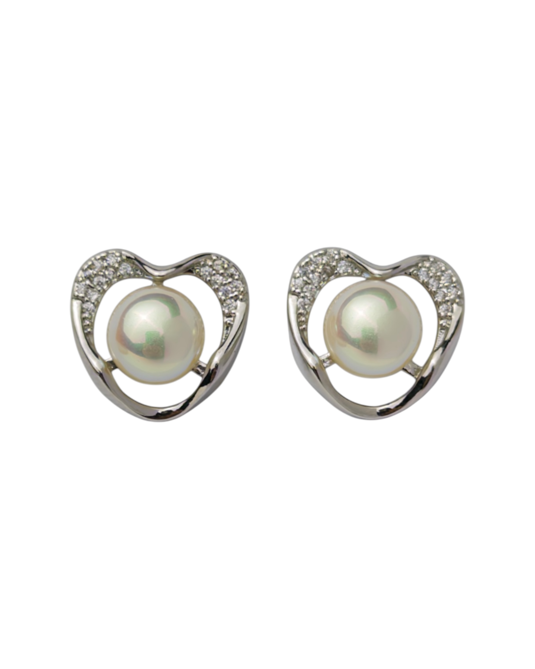 Silver Pearl Heart Studs