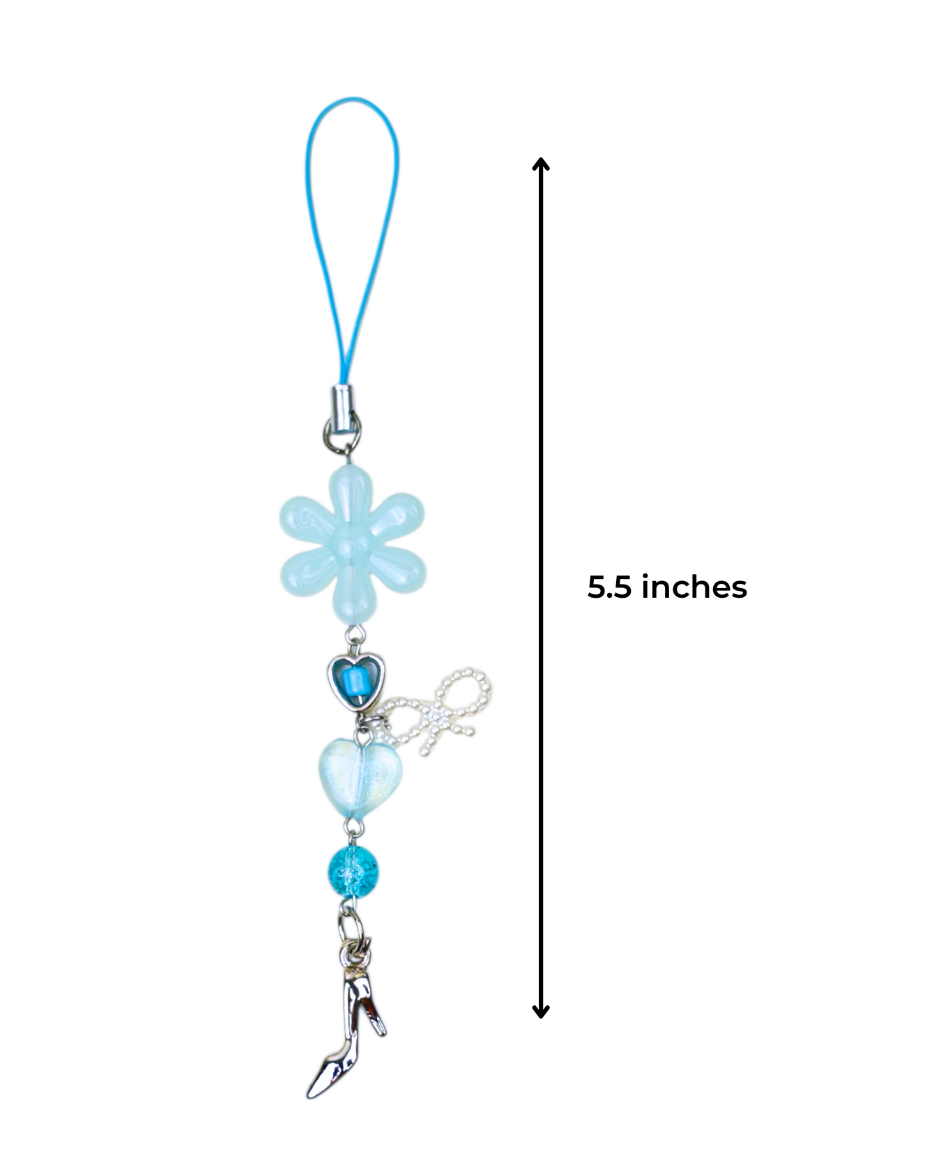 Step into your fairy tale with this dreamy charm! Featuring soft blue beads, dainty hearts, a pretty bow, and of course—a tiny shoe —it’s the perfect blend of princess vibes and everyday magic. Made with stainless steel for durability and shine, it’s ready to glam up your phone, bag, or keys.