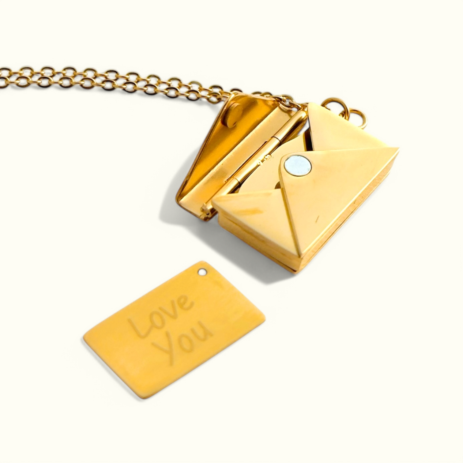 Express love in a special way with our Envelove Necklace. The delicate anti-tarnish stainless steel pendant conceals a heartfelt message that says "Love You". Durable and timeless, this necklace makes for an enduring symbol of affection. Get ready for compliments and meaningful conversations.