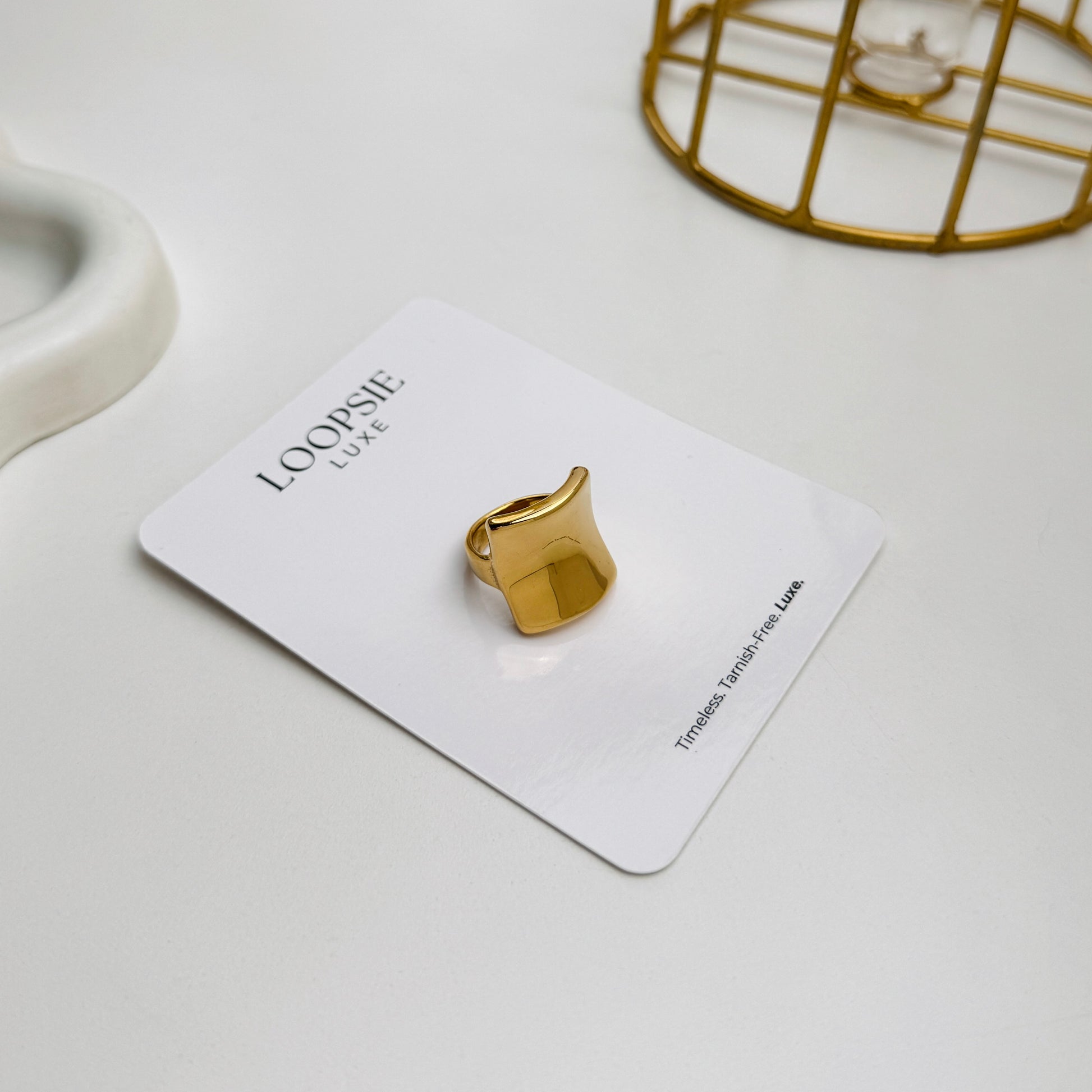 Sculpted wave ring in glossy gold β bold yet minimal β¨