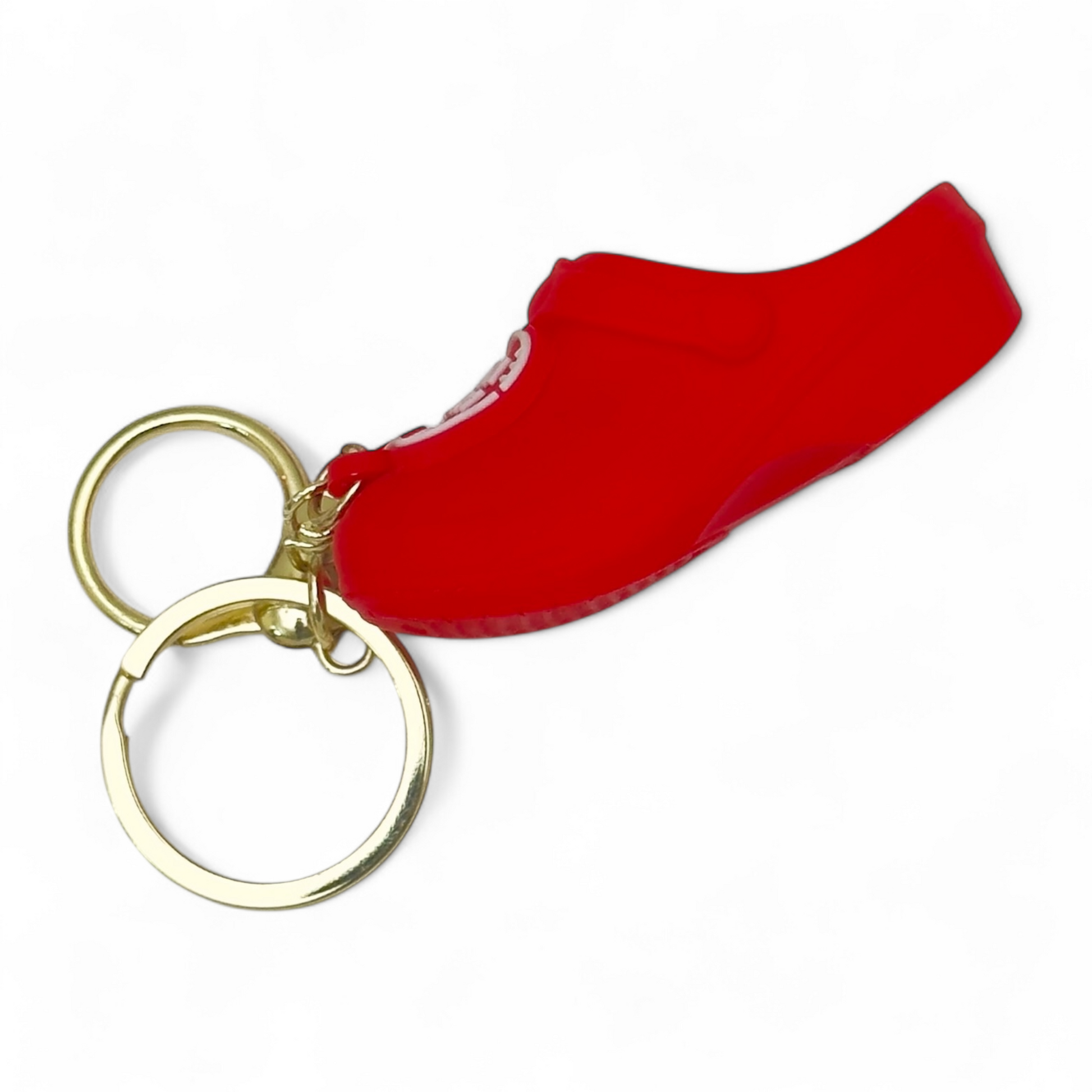 • Premium silicone mini crocs keychain in bright red