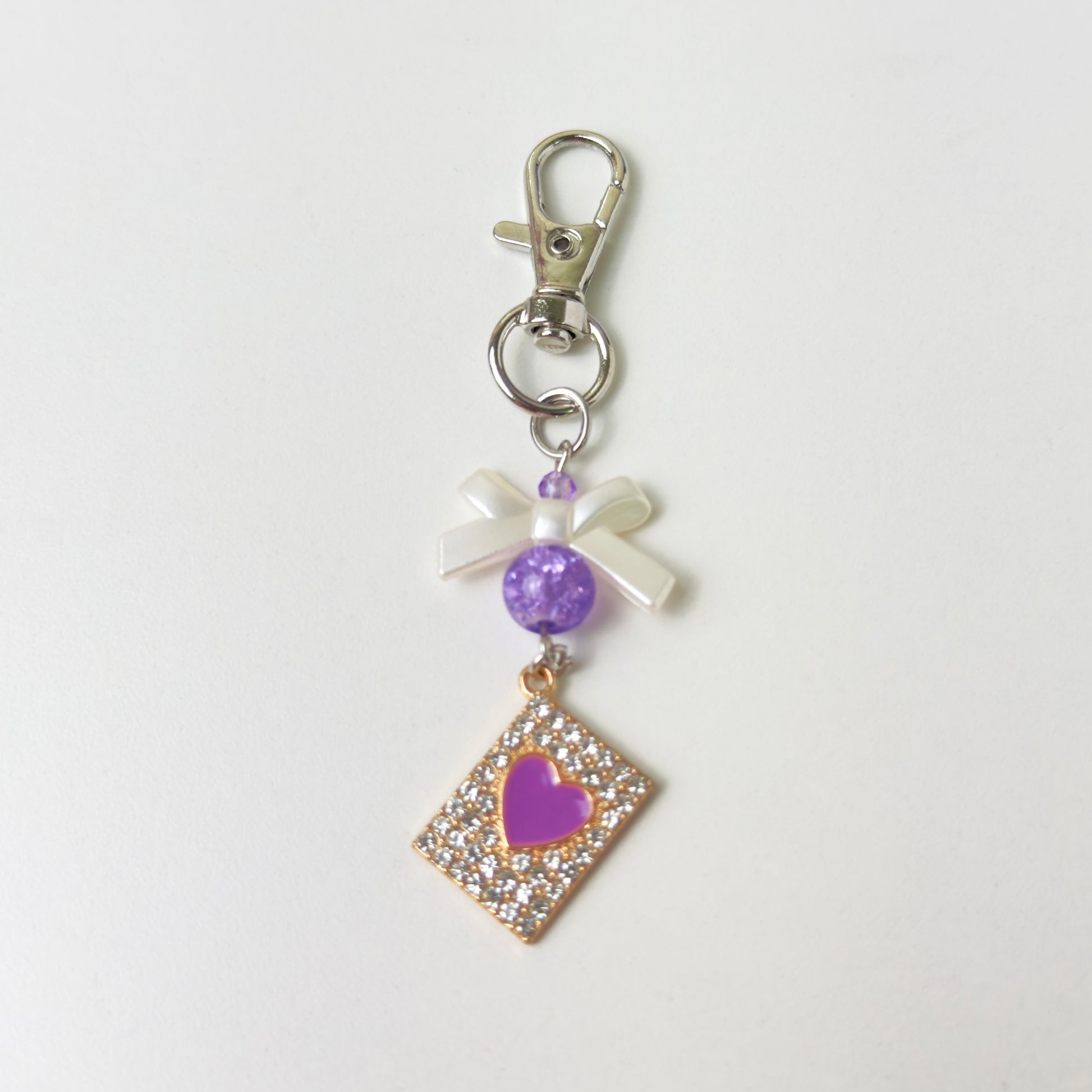 These elegant charms look like mini storybooks with shimmering rhinestone covers, delicate bows, and sweet heart details. Clip them onto your tote, keys, pouches, or backpacks and carry a piece of your love story wherever you go.