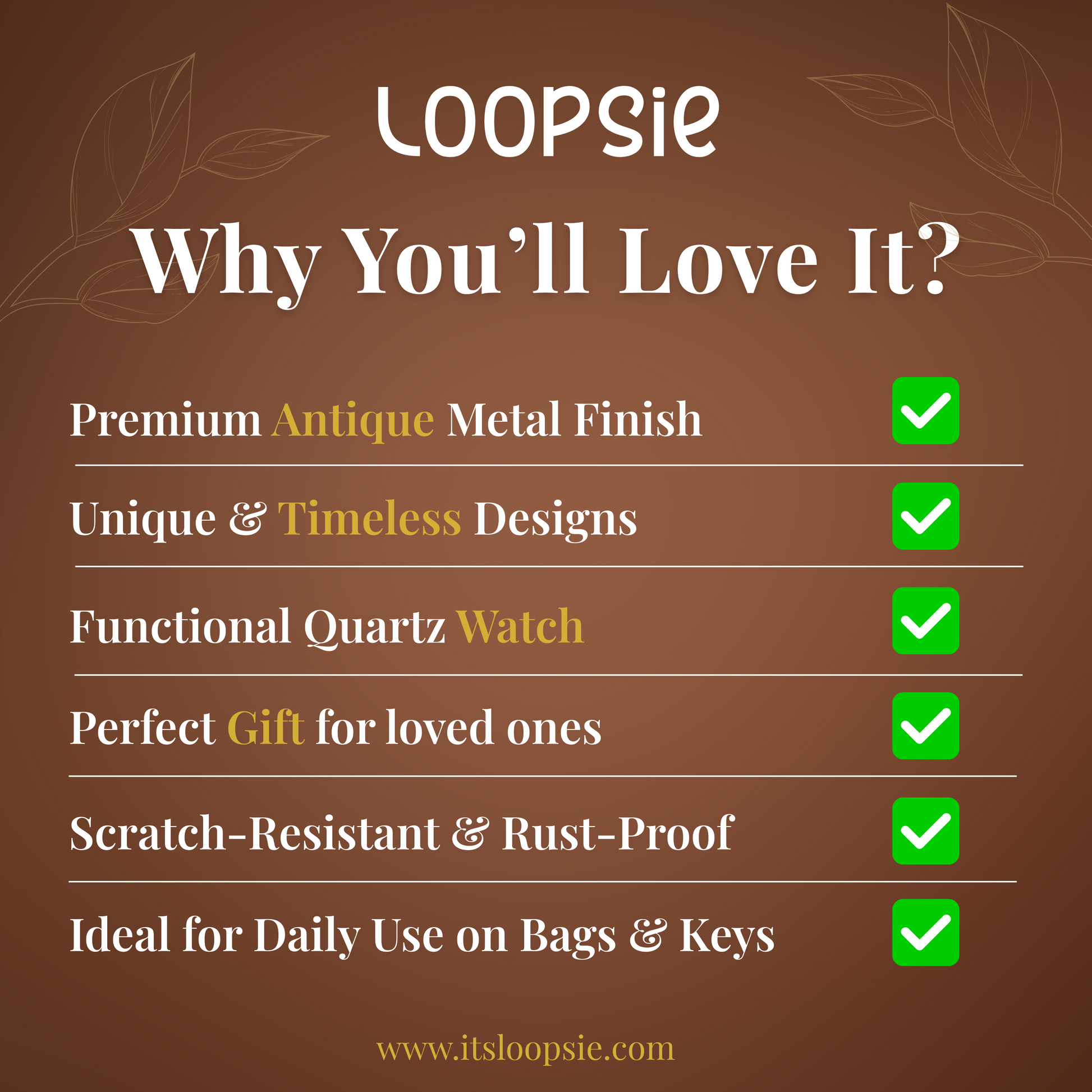 Upgrade your everyday carry with the Loopsie Pocket Watch Keychain – a timeless keepsake designed for daily elegance and effortless gifting.