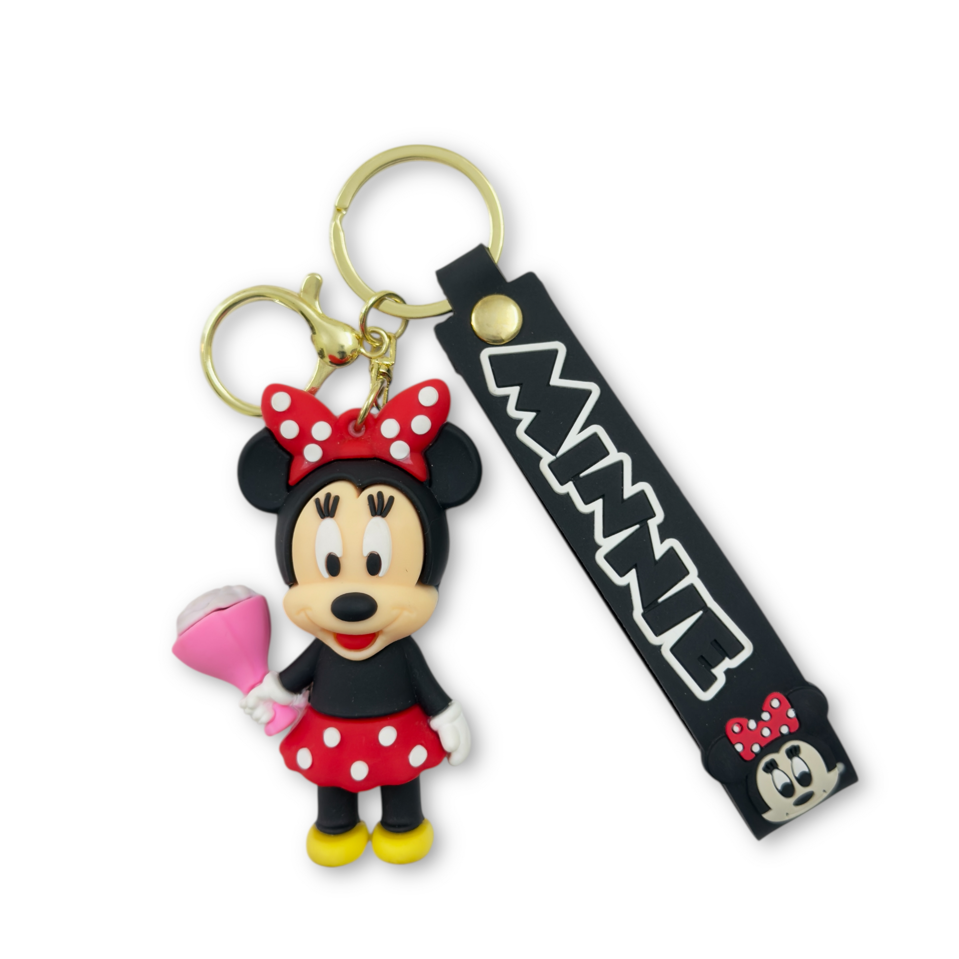 Add a dash of charm to your keys with this Minnie Mouse Keychain dressed in her classic polka dot dress ,With her signature bow, yellow shoes, and open arms, Minnie is ready to spread joy. Comes with a matching Β βDisneyβ strap and an official logo charm.