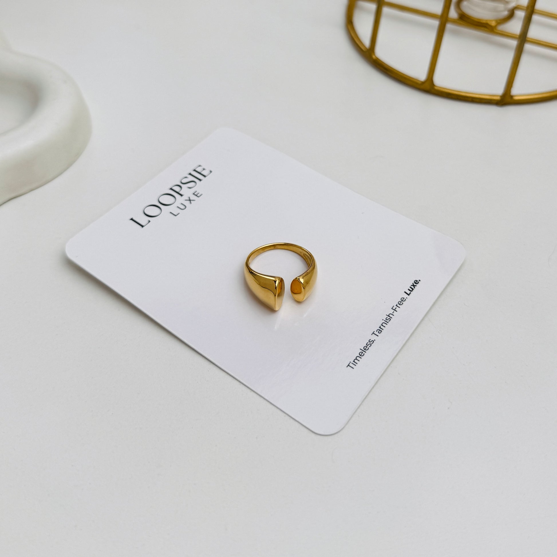 The Molten Clasp Ring is crafted with a modern, open-ended silhouette that mimics the fluidity of melting metal. With its sleek dual-peak shape, this ring embraces your finger like two sculpted waves meeting mid-air β strong, smooth, and magnetic.
