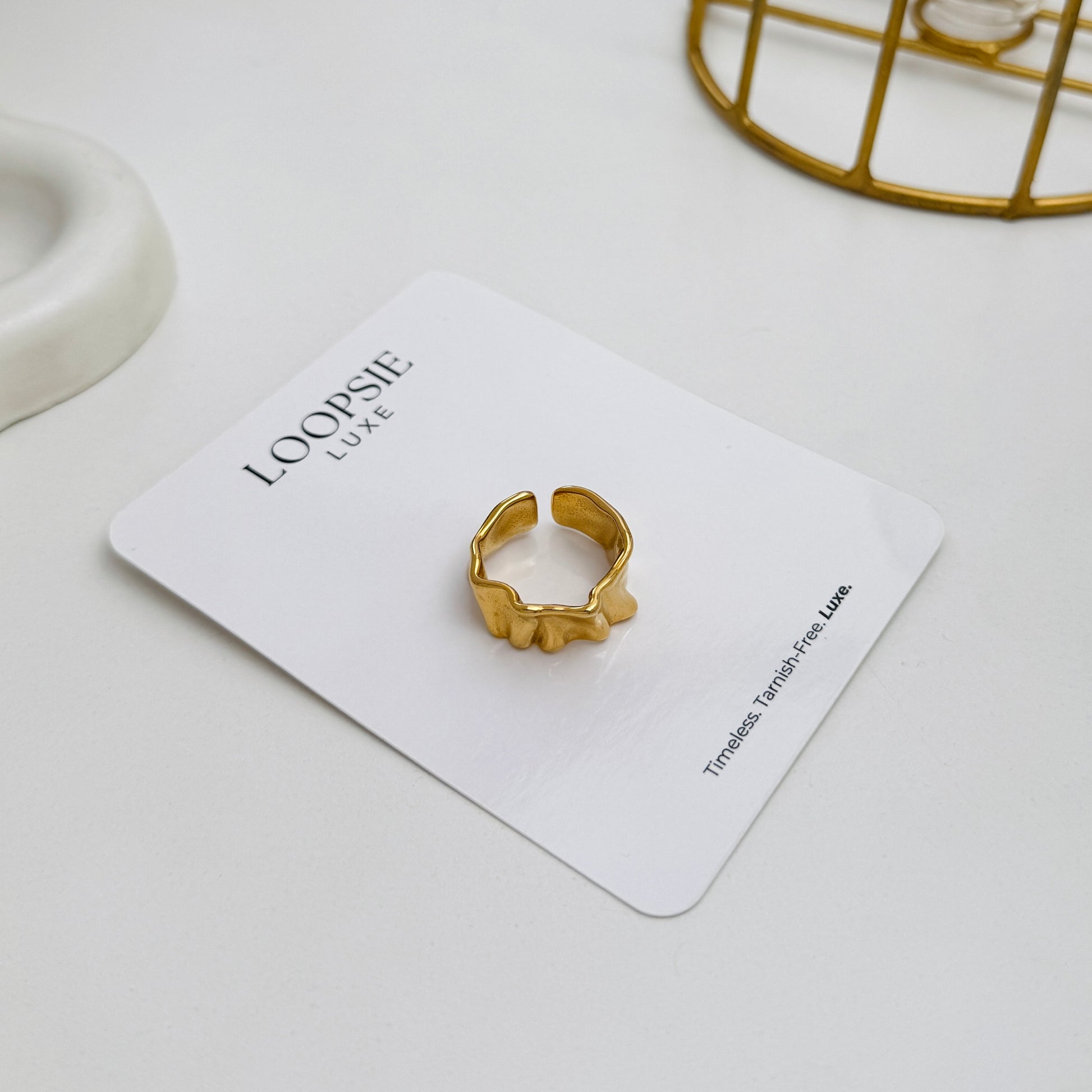 The Molten Gold Ring captures the beauty of movement β like molten metal frozen in time. With its organic, wave-like silhouette, this ring adds edge to any minimal look.