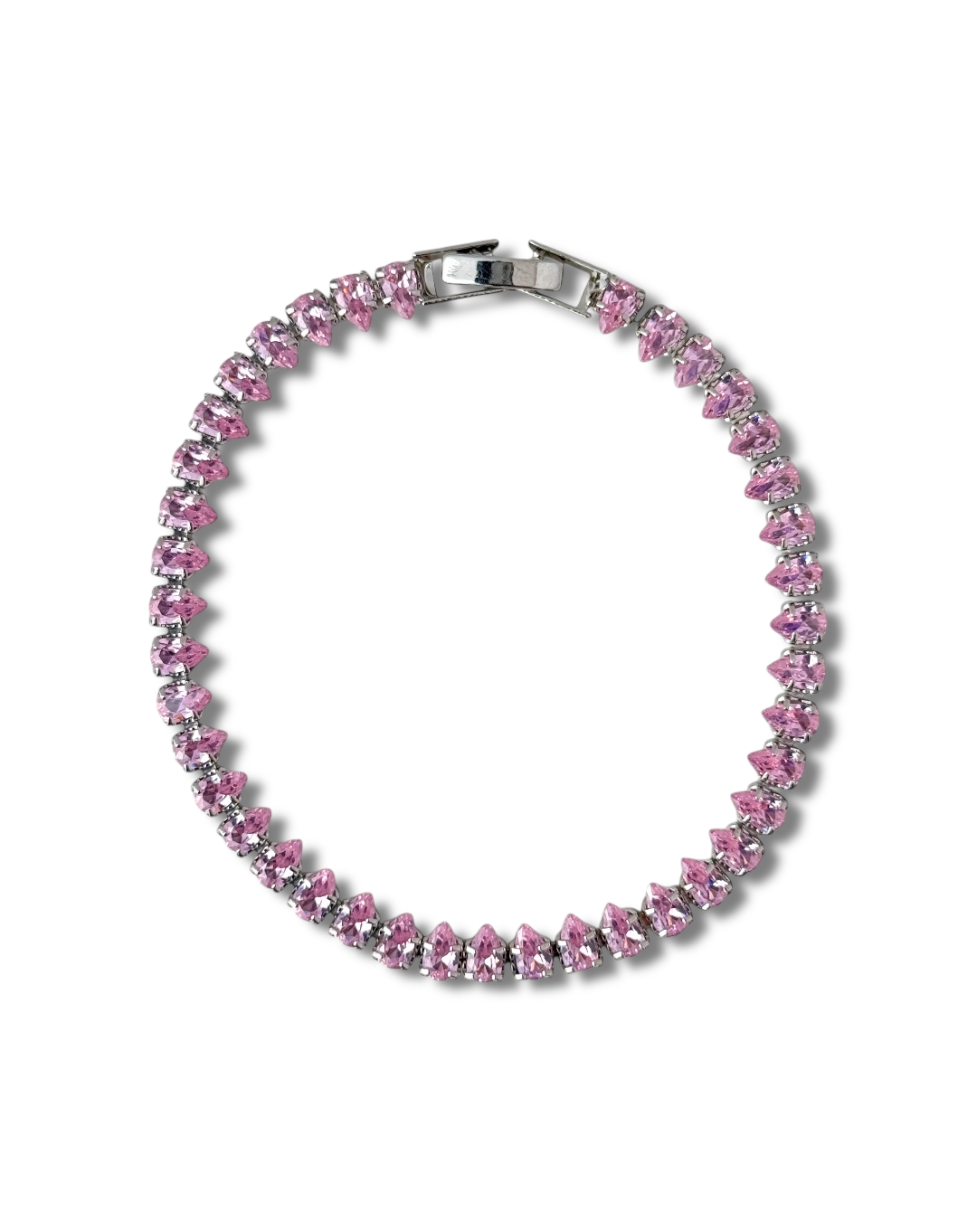 A classic tennis bracelet featuring soft blush pink teardrop stones set in polished stainless steel. Designed to feel feminine, elegant, and timeless.